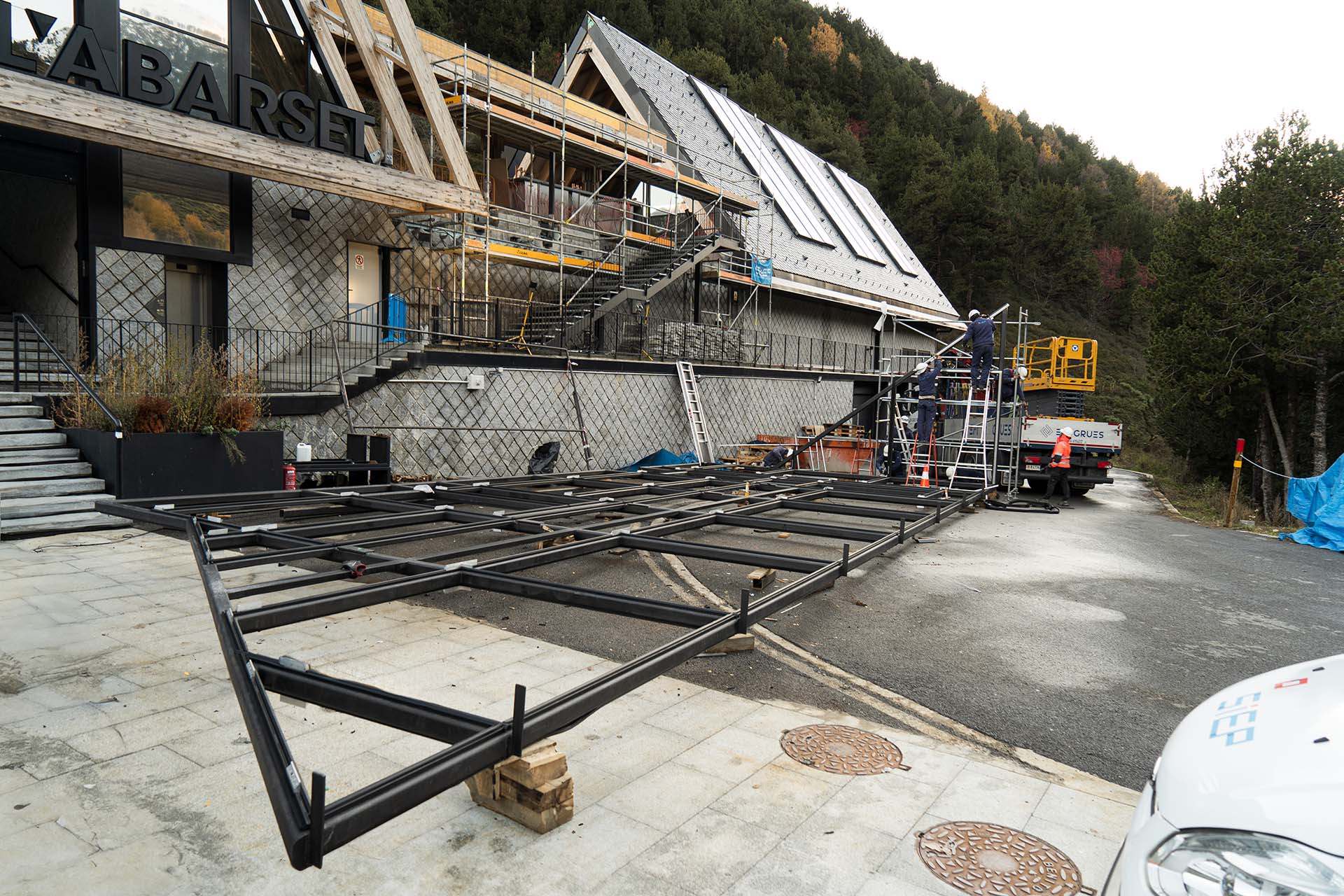 Nou mur cortina de vidre a L’Abarset (Grandvalira – El Tarter), un dels espais d’oci emblemàtics del país.