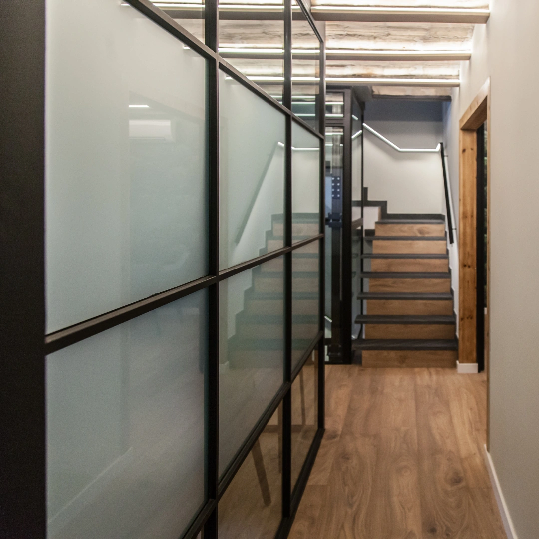 S’han utilitzat fusteries de gran qualitat, perfectament combinades amb estructures i elements en ferro, per assolir una harmonia equilibrada entre disseny arquitectònic i funcionalitat. El resultat és un espai amb personalitat pròpia i caràcter, que realça una estètica sofisticada i exclusiva, d’acord amb l’entorn corporatiu de luxe que representa la marca.